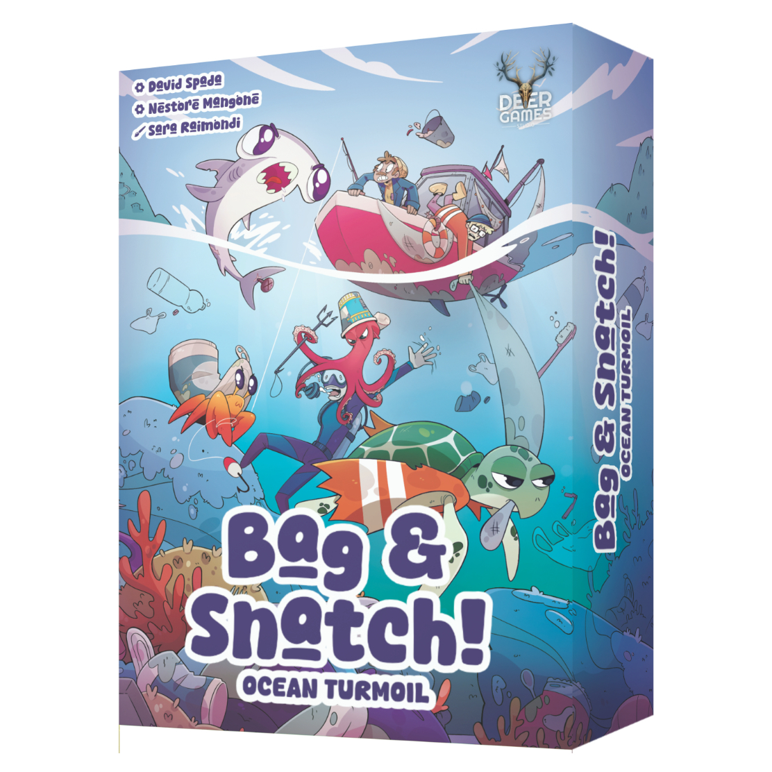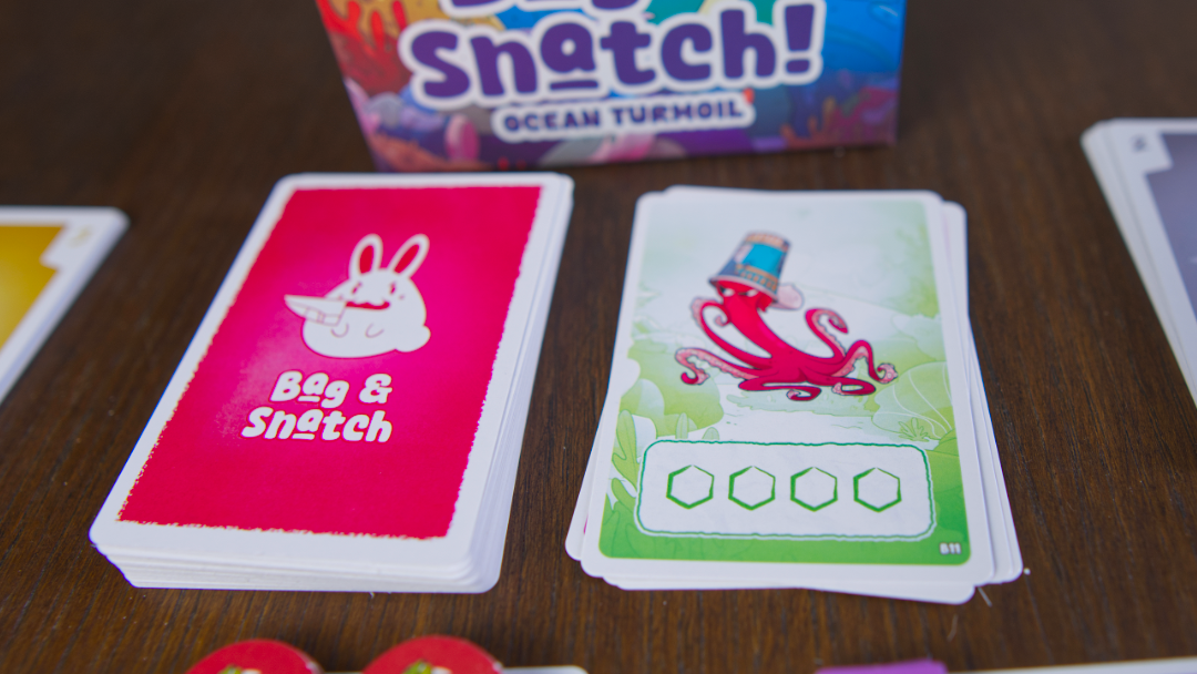 Bag & Snatch! è un gioco da tavolo family/filler per 1–5 giocatori, 15–30 minuti, basato su hand management e push‑your‑luck. I giocatori inseguono e catturano animali per ottenere oggetti e costruire il proprio tesoretto, bilanciando la raccolta delle risorse per massimizzare i punti. Dal secondo round si ottengono punti solo dall’oggetto posseduto in maggior quantità, ma attenzione: reclamare un tipo di oggetto esaurito costringe tutti gli avversari a restituire i segnalini dello stesso tipo, lasciandoli scoperti per il turno successivo. Un titolo accessibile ma profondo, con ottima rigiocabilità e una dose di interazione cattiva.