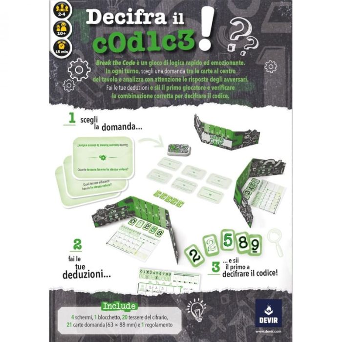 Break the Code è ideale per chi ama i giochi di logica, le sfide mentali e le esperienze di gioco sempre diverse. Perfetto per serate in famiglia, gruppi di amici o appassionati di enigmi.