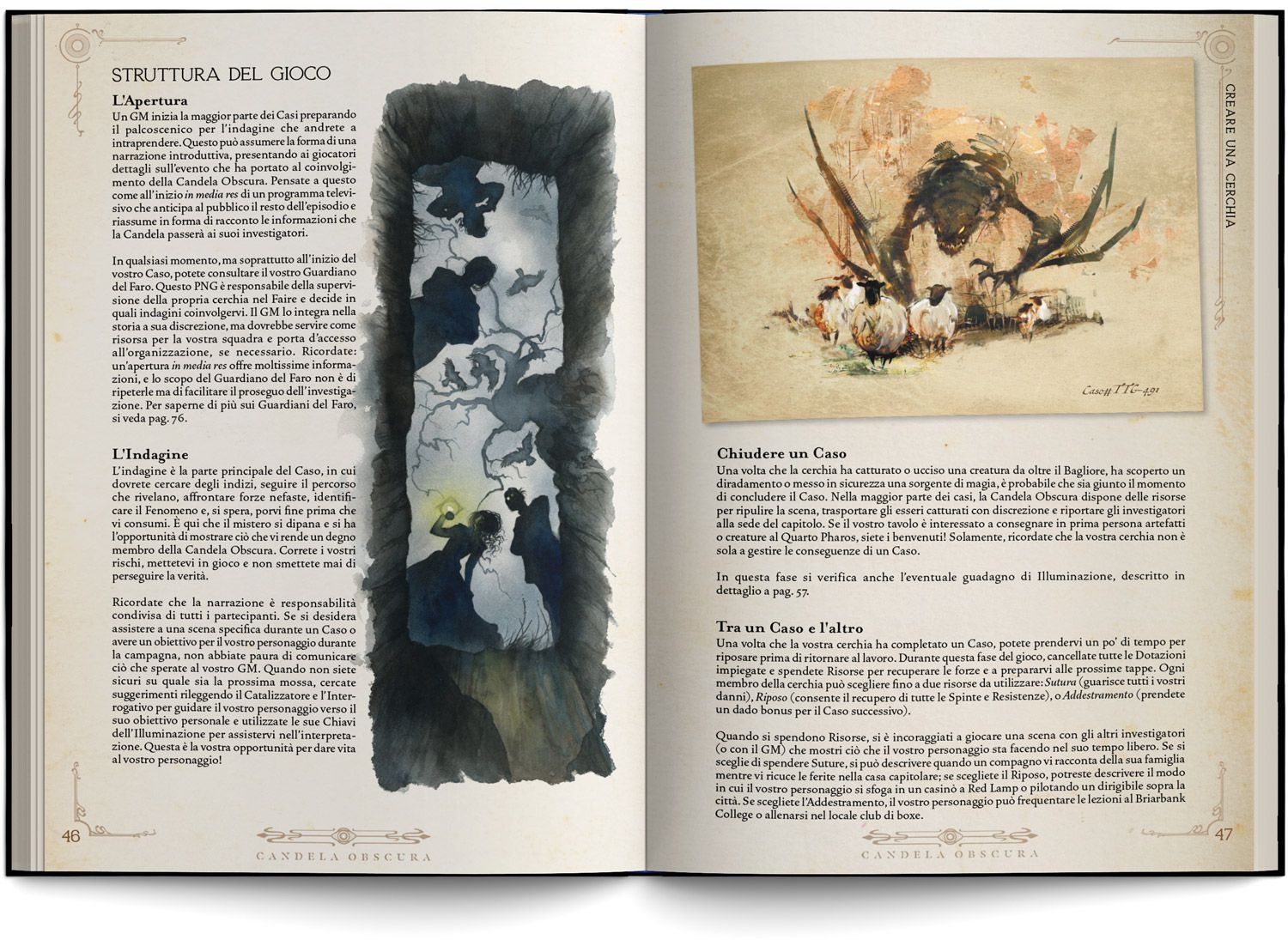 Il gioco utilizza l’Illuminated Worlds System, un sistema narrativo basato su dadi a sei facce, pensato per campagne brevi e archi narrativi intensi. Il manuale include oltre 200 pagine di contenuti: regole complete, ambientazione dettagliata, quattro Casi pronti da giocare e più di 30 esempi per i master, con strumenti per creare personaggi e avventure personalizzate.