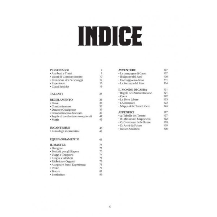 Talenti, magie, oggetti e regole opzionali come i Dadi Slayer.