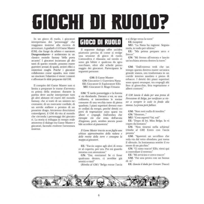 Dungeonslayers+ segna il ritorno dell’avventura old-school fantasy in una nuova edizione rivisitata, essenziale e letale. Un gioco di ruolo snello, veloce e profondo, pensato per chi desidera entrare subito nel vivo dell’azione. Ispirato ai grandi classici del genere, offre un sistema compatto e funzionale, ideale sia per neofiti che per veterani alla ricerca di un regolamento rapido, coerente e ricco di tensione.