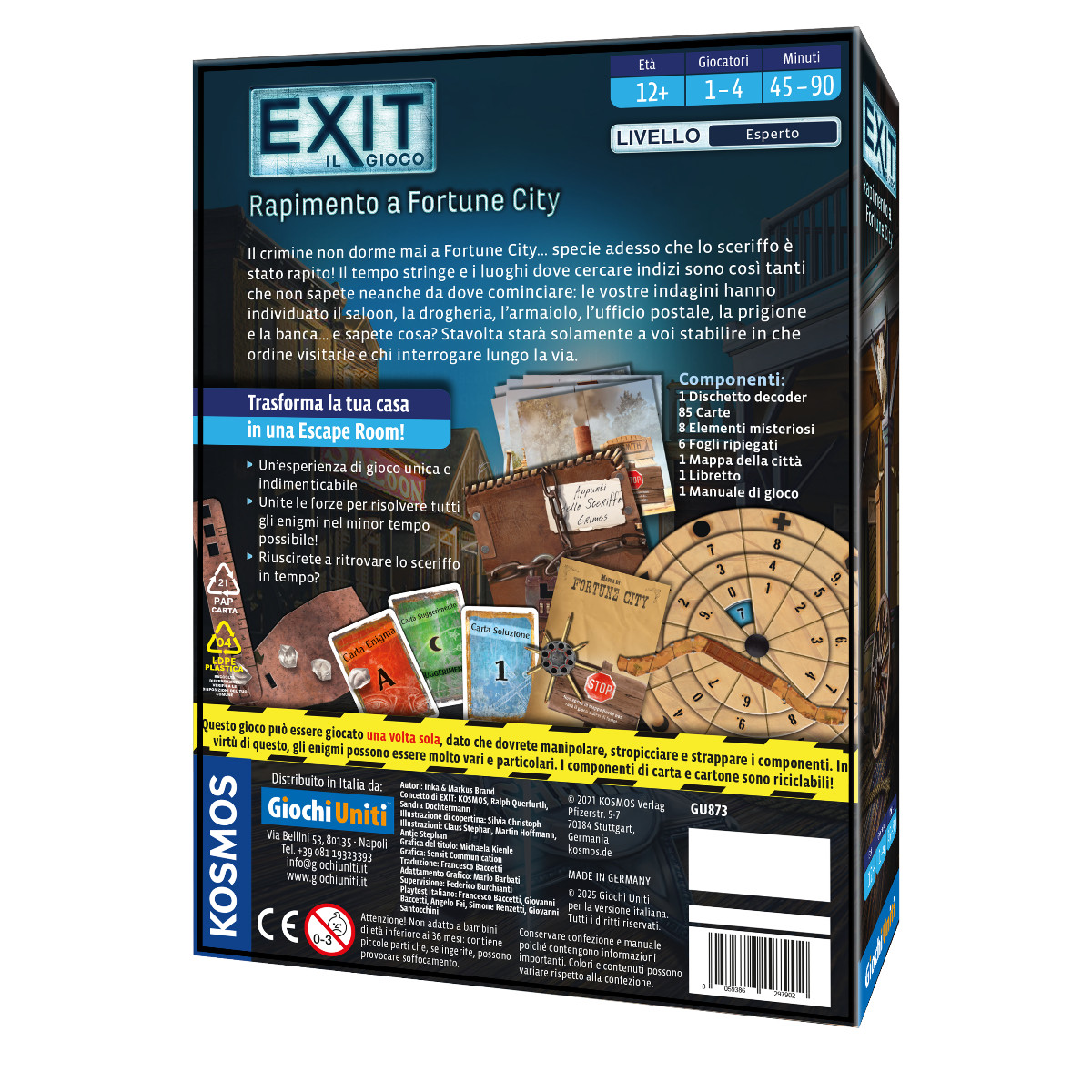 Il crimine non si ferma mai e la situazione è precipitata: lo sceriffo è stato rapito e la città è nel caos. Il tempo stringe e gli indizi sono sparsi in numerosi luoghi chiave, dal saloon alla drogheria, dall’armaiolo all’ufficio postale, fino alla prigione e alla banca. Sarà compito dei giocatori decidere in quale ordine visitarli, chi interrogare e come ricostruire la verità. Ogni scelta modifica il percorso dell’indagine, creando un’esperienza investigativa dinamica, rigiocabile e ricca di tensione narrativa.