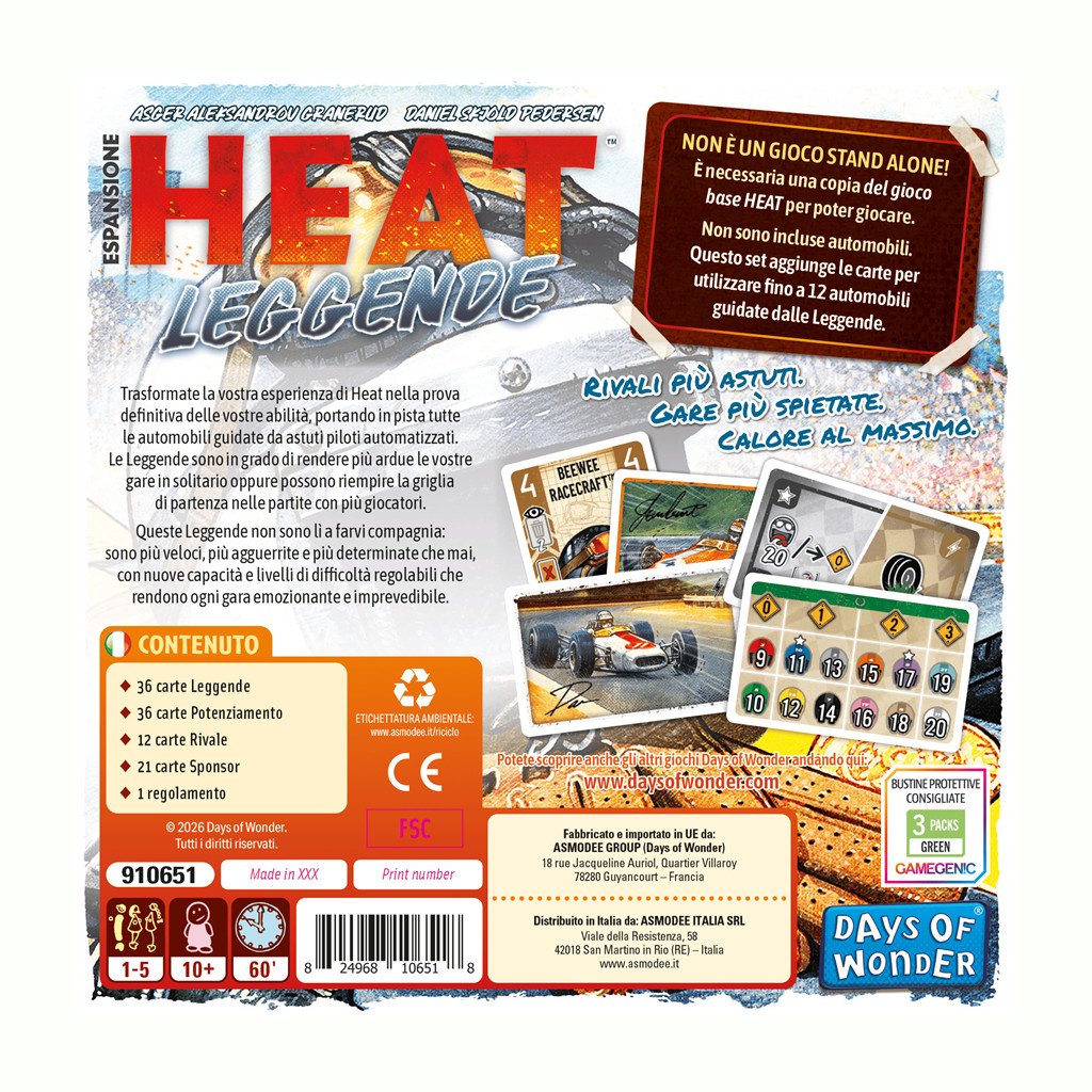Questo set non include automobili: aggiunge esclusivamente le carte necessarie per utilizzare fino a 12 auto guidate dalle Leggende.
