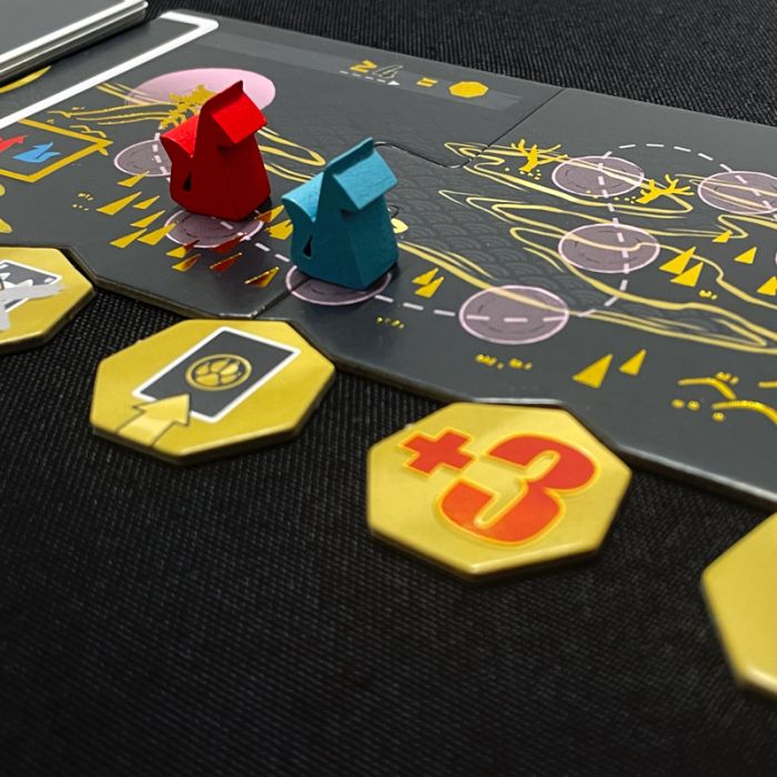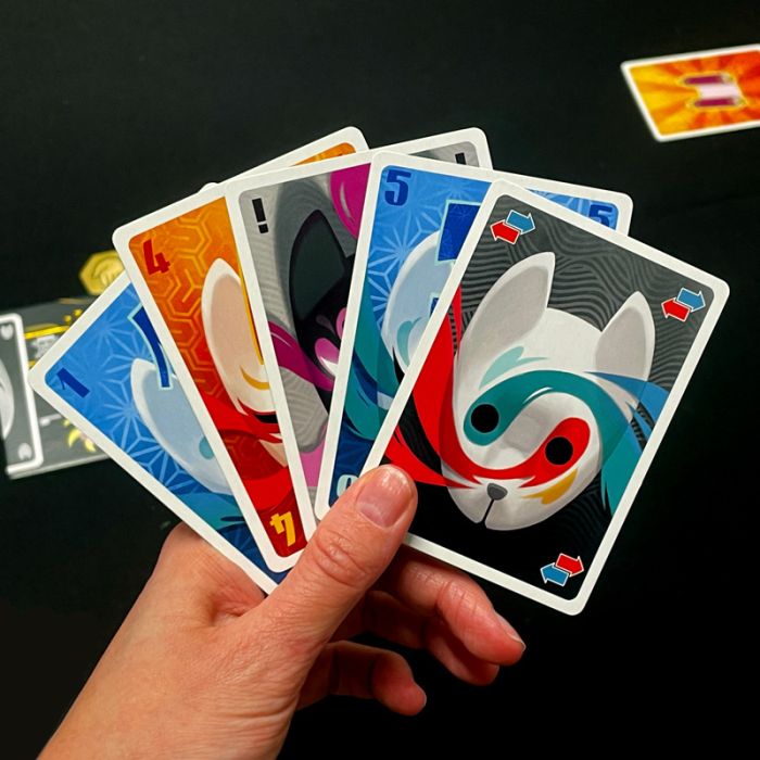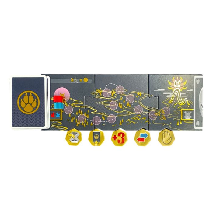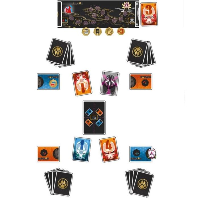 Questo gioco di carte competitivo mette due clan di Kitsune l’uno contro l’altro in sfide 1v1 oppure in squadra 2v2 o 3v3. I giocatori appartengono al clan Zenko (carte blu) o al clan Yako (carte arancioni), ma per vincere dovranno utilizzare in modo strategico sia le carte del proprio clan sia quelle avversarie. Ogni round è composto da una serie di prese: alla fine di ciascuna si confronta il valore totale delle carte arancioni contro quello delle carte blu. Il clan con il valore più alto avanza il proprio segnalino Kitsune sul Tracciato della Saggezza di un numero di spazi pari alla differenza tra i due valori. Se la differenza supera 4, la squadra che ha perso la presa ottiene un gettone Potere. Un round termina quando un clan raggiunge lo spazio di saggezza assoluta. La partita si conclude quando un clan vince due round. Le carte speciali, i cambi di strategia legati al tempismo e l’uso dei gettoni Potere rendono ogni sfida dinamica, imprevedibile e ricca di decisioni tattiche. Un gioco rapido, elegante e perfetto per chi ama la competizione diretta e la gestione strategica delle prese.