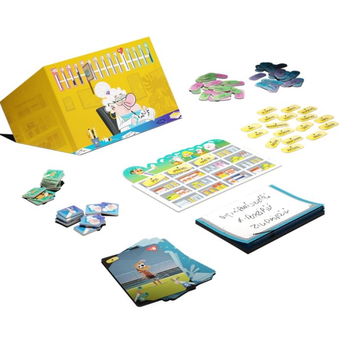Il gioco include una plancia, carte trattamento e paziente, segnalini speciali e pillola, oltre a un blocchetto ricette e uno schermo dedicato, offrendo tutto il necessario per partite dinamiche e ricche di interazione. Un titolo ideale per gruppi di amici, famiglie e chiunque cerchi un gioco veloce, cooperativo e capace di generare risate continue.