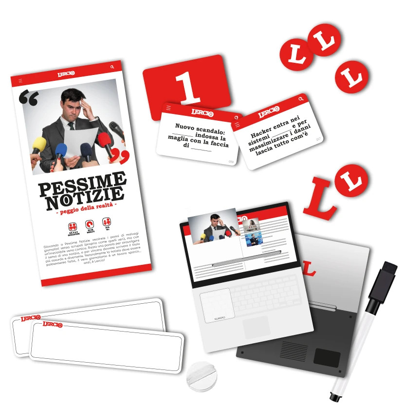 Lercio – Il Gioco è un party game irriverente e spietato, in cui i giocatori vestono i panni di giornalisti alle prese con la creazione di titoli sensazionalistici per la prima pagina del proprio quotidiano. Ispirato ai veri titoli di Lercio, il gioco stimola la fantasia e l’umorismo nero, trasformando ogni round in una sfida delirante per conquistare la gloria redazionale.