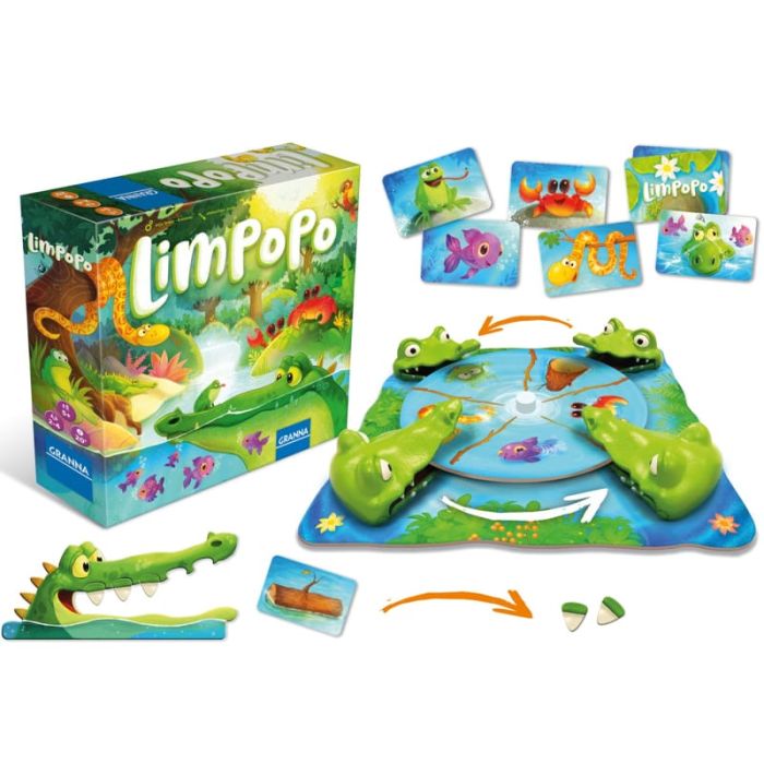 Limpopo è un gioco di destrezza e riflessi per bambini, caratterizzato da scenografiche teste di coccodrillo 3D. I piccoli giocatori fanno girare il vortice, schiacciano e pescano gli snack dal fiume, cercando di catturare i bocconi migliori senza farsi sorprendere dai dentini.