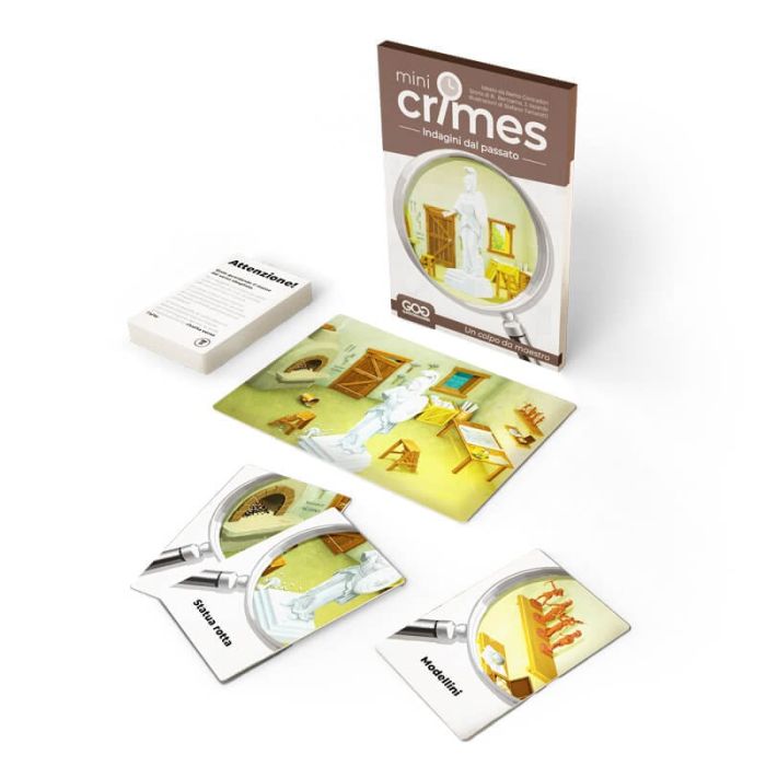 Mini Crimes è un gioco investigativo cooperativo che mette alla prova capacità di osservazione e deduzione. Analizzerete una scena del crimine e fino a 10 indizi per ricostruire la verità. La serie “Indagini dal Passato” propone casi ambientati in epoche diverse, dall’antica Grecia al Medioevo, offrendo esperienze di gioco sempre nuove e coinvolgenti.