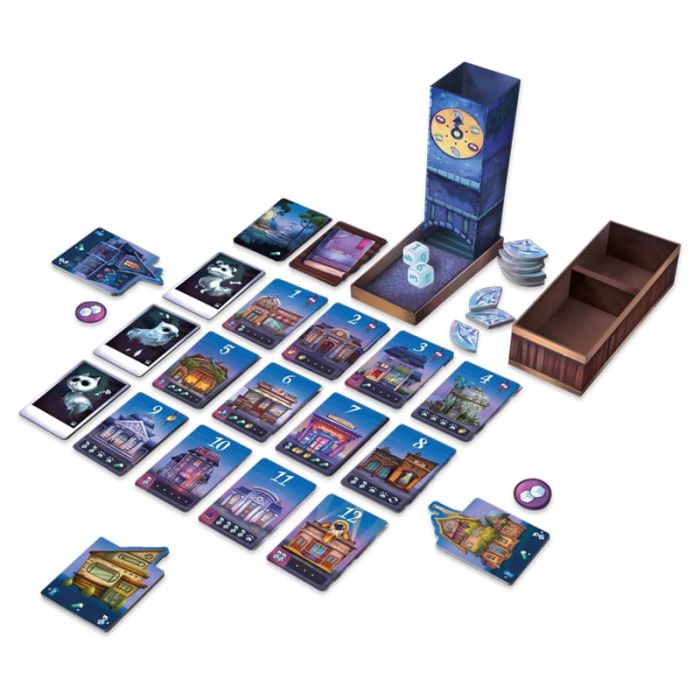 I fantasmi sono fuggiti dalla torre dell’orologio e hanno invaso la città: l’unico modo per catturarli è fotografarli oppure riparare l’amuleto protettivo. I giocatori tirano i dadi per determinare gli edifici disponibili nel turno, poi scelgono se esplorare la città raccogliendo carte Edificio o fotografare, rivelando le proprie carte per ottenere bonus e intrappolare i fantasmi.