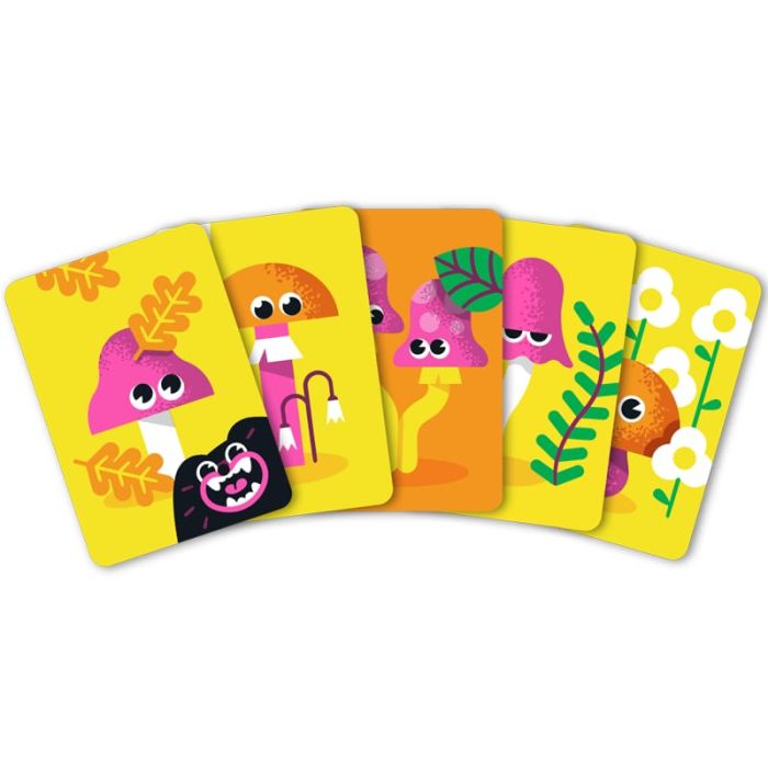 Quando un giocatore rivela tre carte orso, scatta la trasformazione: corre a prendere il cucchiaio mangia‑funghi mentre gli altri lanciano i dadi per raccogliere più carte possibile prima del suo ritorno. Se restano funghi sul tavolo, l’orso li divora tutti.