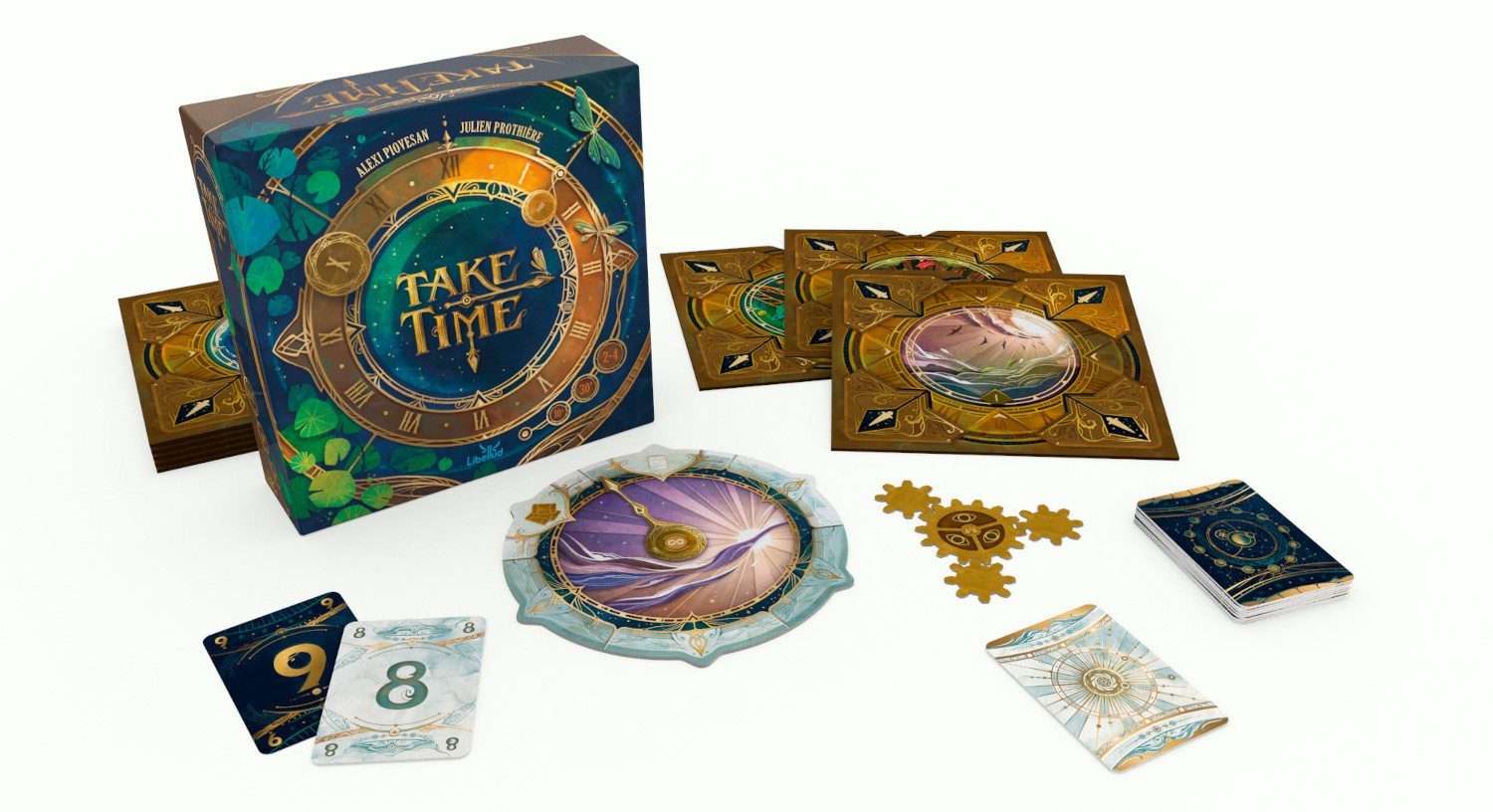 Take Time è un gioco collaborativo che mette alla prova la capacità strategica e comunicativa dei giocatori. Ambientato in universi scanditi da orologi misteriosi, ogni partita è una sfida da affrontare insieme, dove si vince o si perde come squadra.
